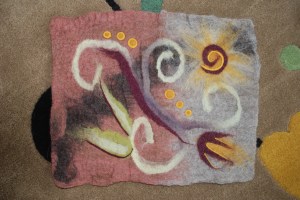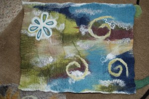Fresh from the felting class at the Black Sheep Gathering I’ve been trying my hand at home made felting.